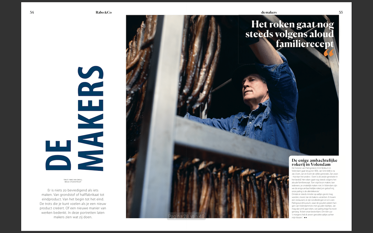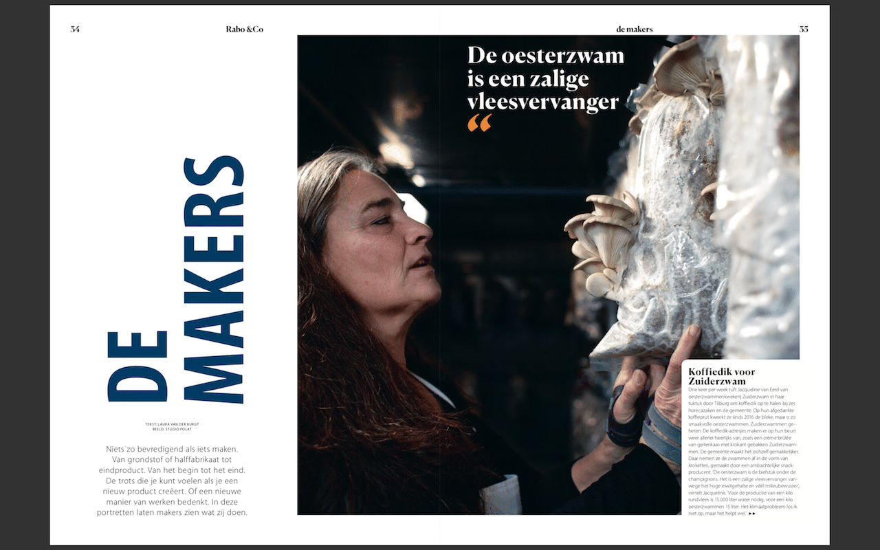 December 2019 I photographed 28 businesses throughout the Netherlands for Rabo&Co, a magazine from the Rabobank. commissioned by Studio Polat, I photographed these people whilst they worked with their products and told me about their ideas and actions regarding a sustainable future.